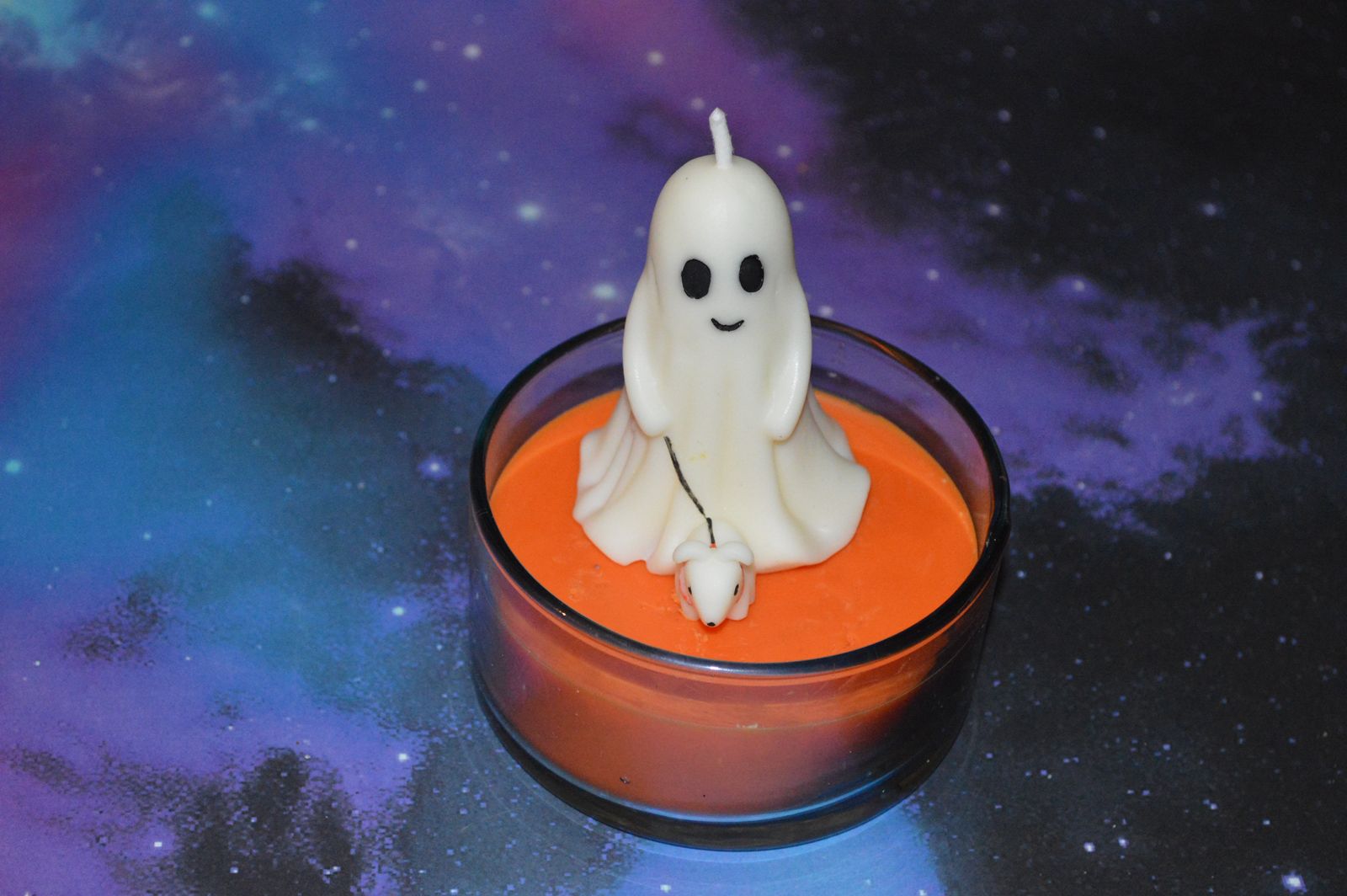 Ghost Walk es una de nuestras velas para Halloween más tiernas: un pequeño fantasma disfrutando de su rutina favorita junto a su perro.